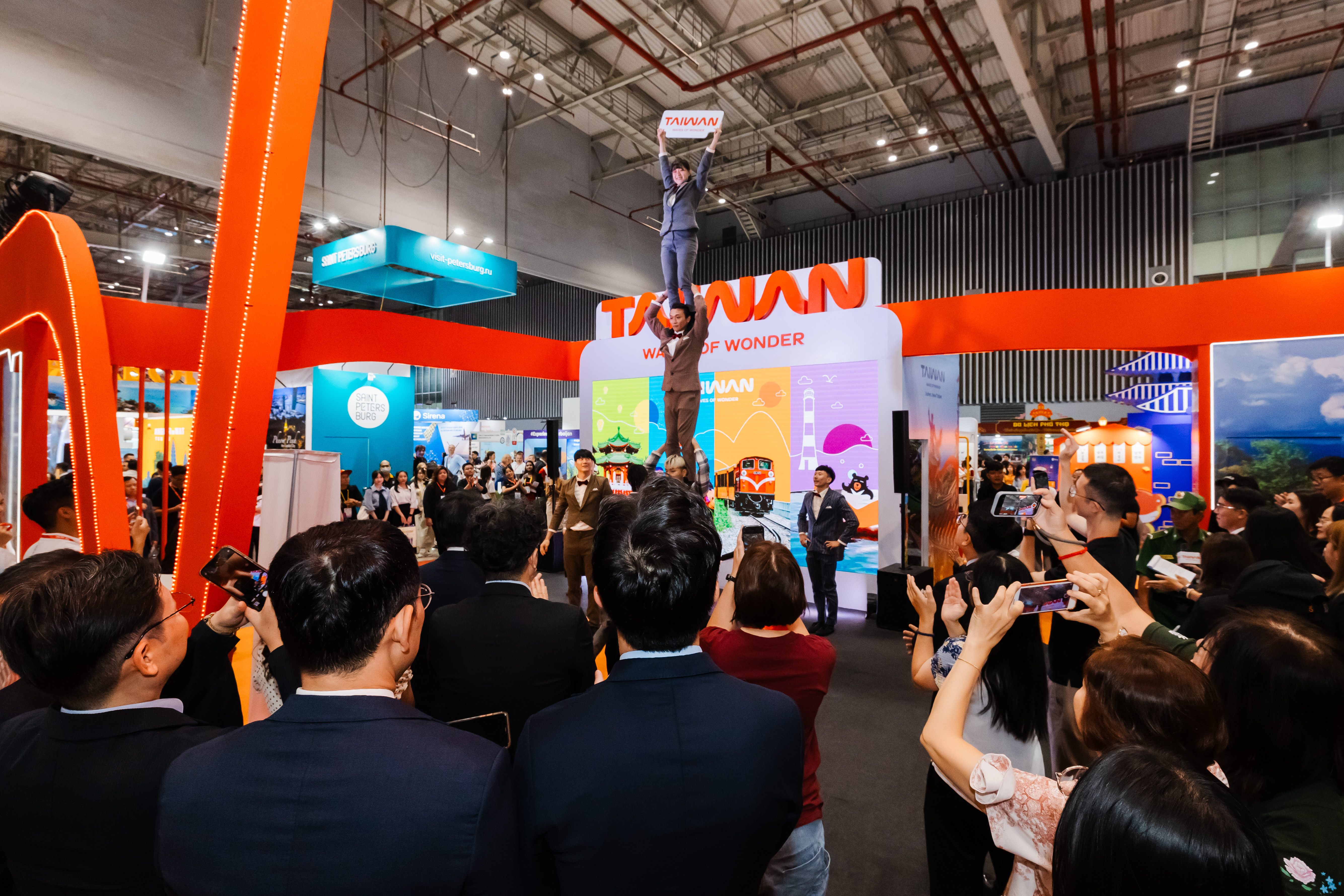 胡志明市ITE國際旅展中,台灣館以觀光品牌3.0「Taiwan – Waves of Wonder」為設計主軸,並邀請FOCASA馬戲團領銜「彈跳飛人」演出,展現多樣高難度馬戲技巧;另外更有具台灣特色的體驗活動,讓越南民眾親身感受台灣文化魅力。為增添互動樂趣,規劃多種趣味遊戲與限量贈品,按讚、打卡、填問卷皆可獲得旅行小物及娃娃機抽獎機會,最高可獲得台灣住宿券與機場接送服務,讓越南民眾在參觀台灣館的同時,也能帶回滿滿的驚喜。