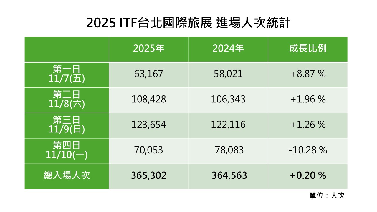 2025 ITF台北國際旅展圓滿落幕,2026年將以全新名稱「ITF台灣國際旅展」與大家見面,展期為11月6日至11月9日,地點在台北南港展覽館一館,參展單位報名敬請鎖定官方平台,掌握最新訊息。