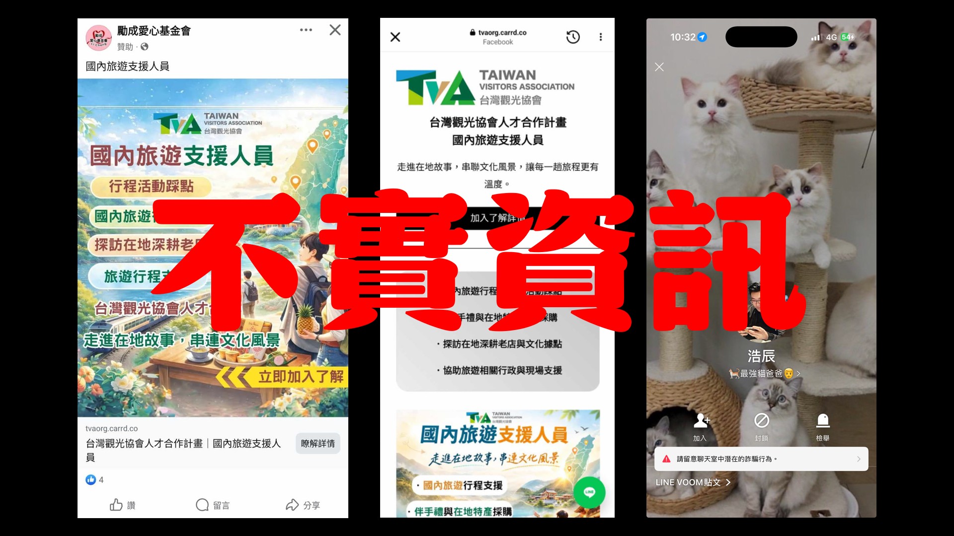 近期發現有不肖人士冒名台灣觀光協會官方,透過facebook貼文廣告,以「勵成愛心基金會」粉專之名,發出【台灣觀光協會人才合作計畫─國內旅遊支援人員】,於貼文中盜用TVA logo,假冒台灣觀光協會官方資訊。